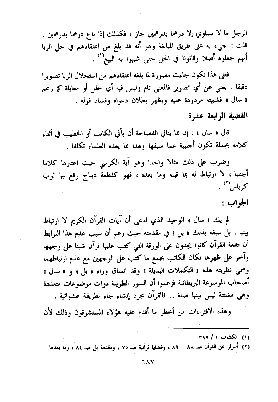 (2) أسرار عن القرآن ص 88 - 89، وقضايا قرآنية ص 75، ومقدمة بل ص 84، وما بعدها.