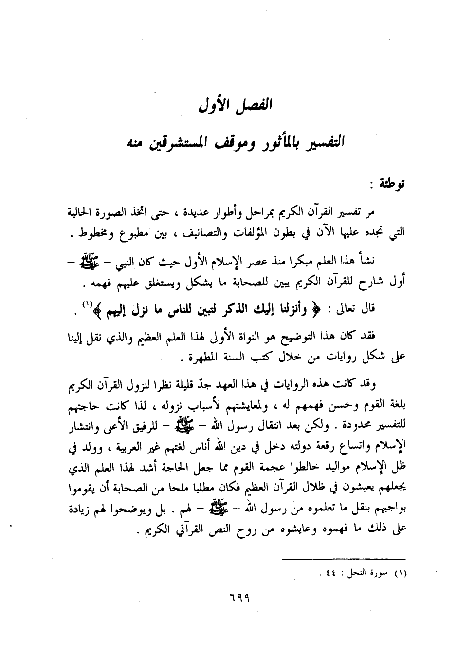 الفصل الأول: التفسير بالمأثور وموقف المستشرقين منه