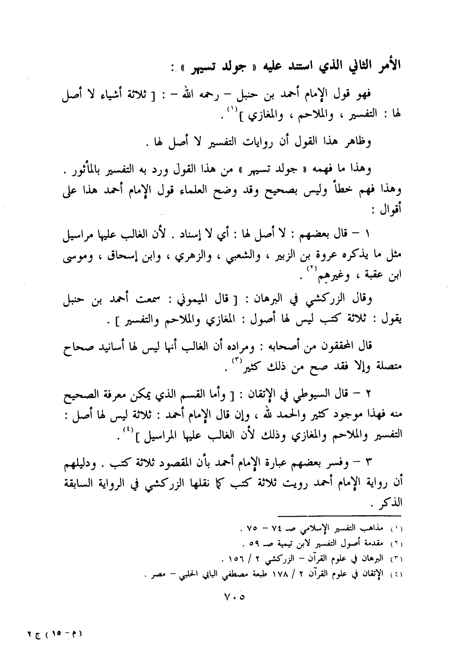 الأمر الثاني الذي استند عليه «جولد تسيهر»: