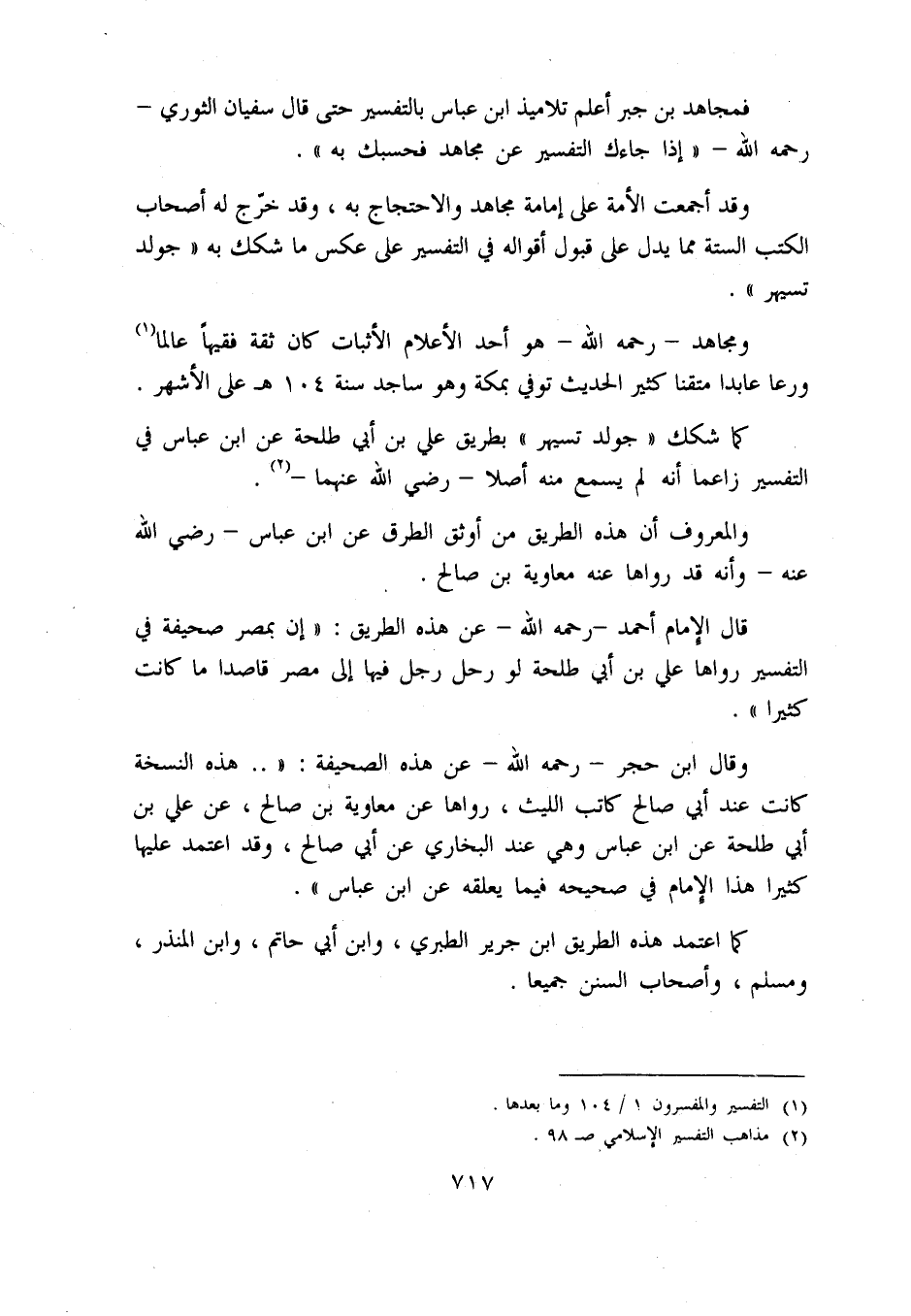 كما شكك «جولد تسيهر» بطريق علي بن أبي طلحة عن ابن عباس في التفسير زاعما أنه لم يسمع منه أصلا - رضي اللّه عنهما - «2».