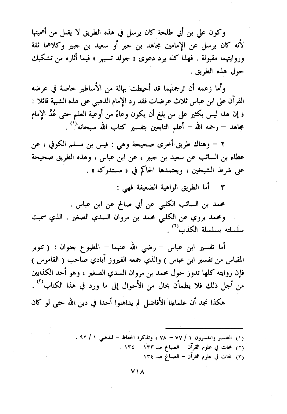 وكون علي بن أبي طلحة كان يرسل في هذه الطريق لا يقلل من أهميتها لأنه كان يرسل عن الإمامين مجاهد بن جبر أو سعيد بن جبير وكلاهما ثقة وروايتهما مقبولة. فهذا كله يرد دعوى «جولد تسيهر» فيما أثاره من تشكيك حول هذه الطريق.