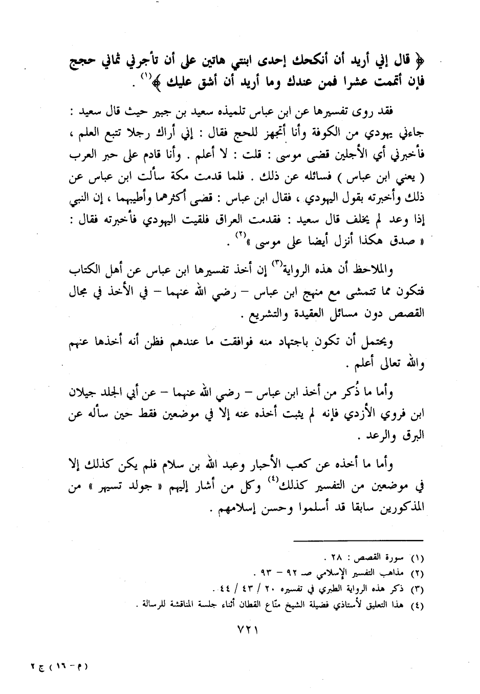 وأما ما أخذه عن كعب الأحبار وعبد اللّه بن سلام فلم يكن كذلك إلا في موضعين من التفسير كذلك «4» وكل من أشار إليهم «جولد تسيهر» من المذكورين سابقا قد أسلموا وحسن إسلامهم.