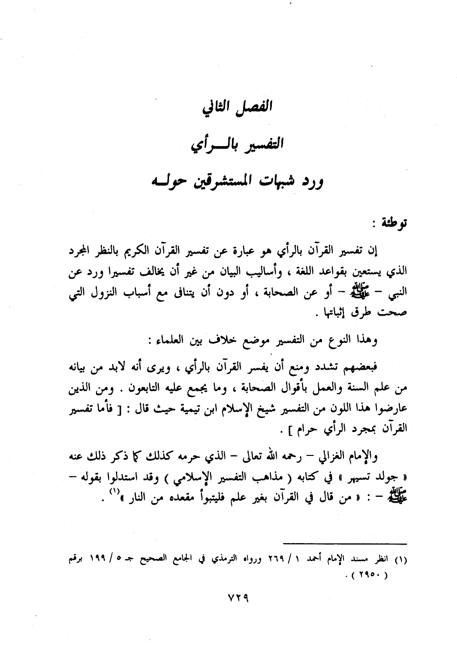 الفصل الثاني التفسير بالرأي ورد شبهات المستشرقين حوله