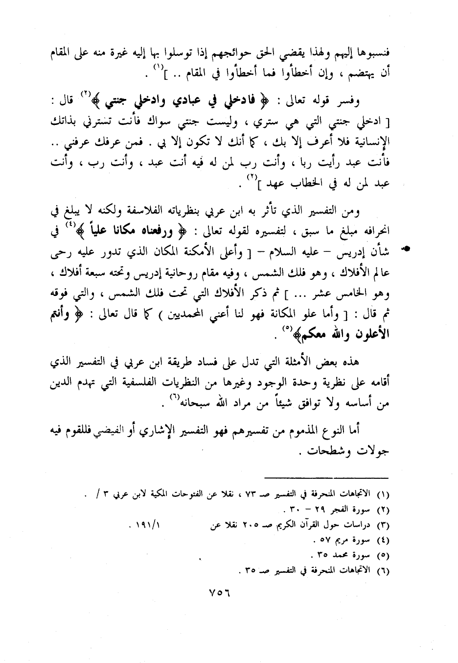 (1) الاتجاهات المنحرفة في التفسير ص 73، نقلا عن الفتوحات المكية لابن عربي 3/.