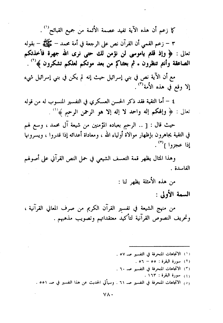 من منهج الشيعة في تفسير القرآن الكريم من صرف المعاني القرآنية، وتحريف النصوص القرآنية لتأكيد معتقداتهم وتصويب مذهبهم.