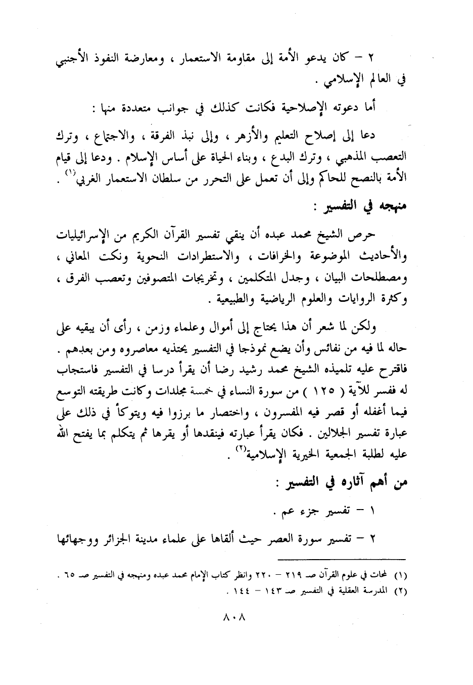 2 - تفسير سورة العصر حيث ألقاها على علماء مدينة الجزائر ووجهائها