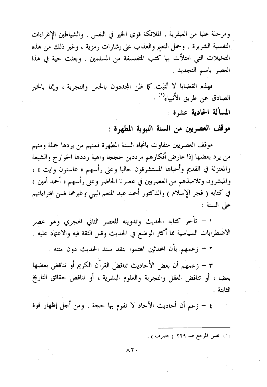 المسألة الحادية عشرة: موقف العصريين من السنة النبوية المطهرة: