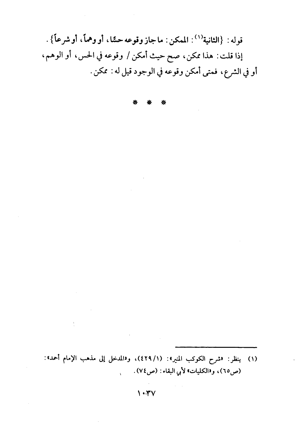 إِذا قلت: هَذَا مُمكن، صَحَّ حَيْثُ أمكن وُقُوعه فِي الْحس، أَو الْوَهم، أَو فِي الشَّرْع، فَمَتَى أمكن وُقُوعه فِي الْوُجُود قيل لَهُ: مُمكن.