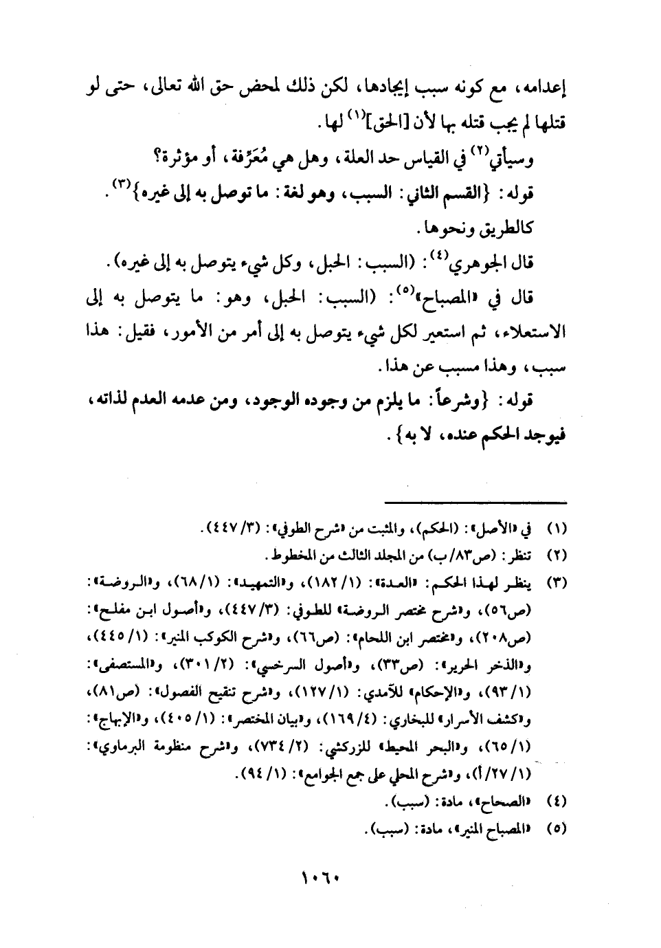 قَالَ فِي " الْمِصْبَاح ": (السَّبَب: الْحَبل، وَهُوَ: مَا يتَوَصَّل بِهِ إِلَى الاستعلاء، ثمَّ استعير لكل شَيْء يتَوَصَّل بِهِ إِلَى أَمر من الْأُمُور، فَقيل: هَذَا سَبَب، وَهَذَا مسبب عَن هَذَا.