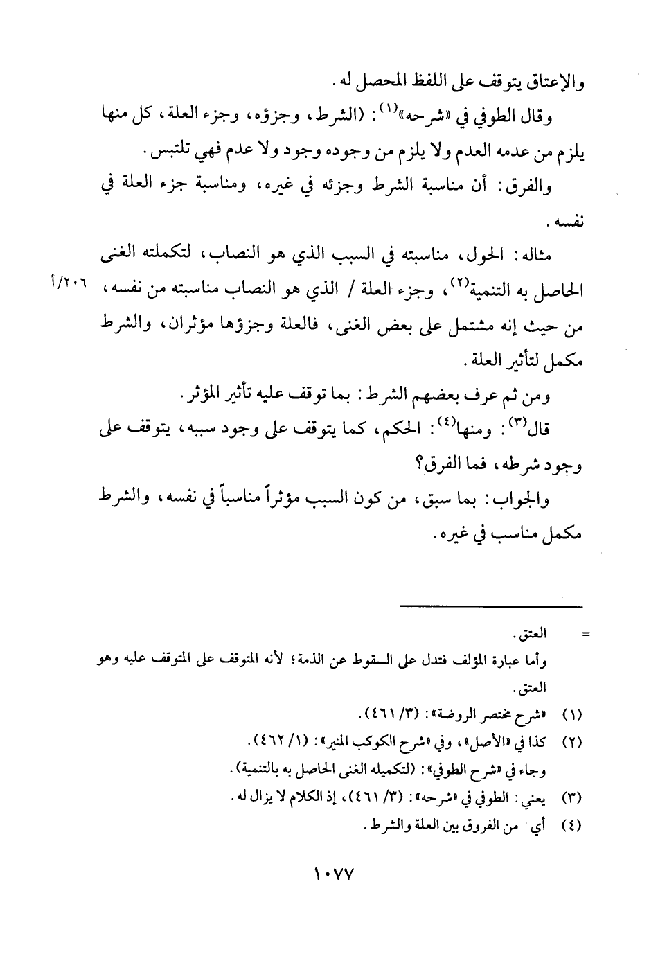 وَقَالَ الطوفي فِي " شَرحه ": (الشَّرْط، وجزؤه، وجزء الْعلَّة، كل مِنْهَا يلْزم من عَدمه الْعَدَم وَلَا يلْزم من وجوده وجود وَلَا عدم فَهِيَ تَلْتَبِس.