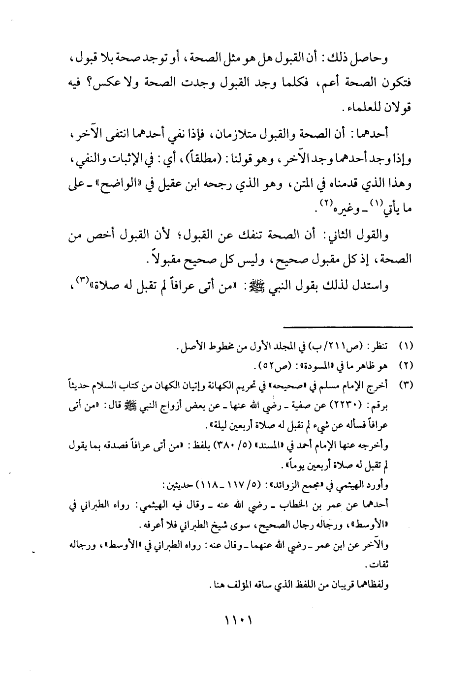 وَحَاصِل ذَلِك: أَن الْقبُول هَل هُوَ مثل الصِّحَّة، أَو تُوجد صِحَة بِلَا قبُول، فَتكون الصِّحَّة أَعم، فَكلما وجد الْقبُول وجدت الصِّحَّة وَلَا عكس؟ فِيهِ قَولَانِ للْعُلَمَاء.