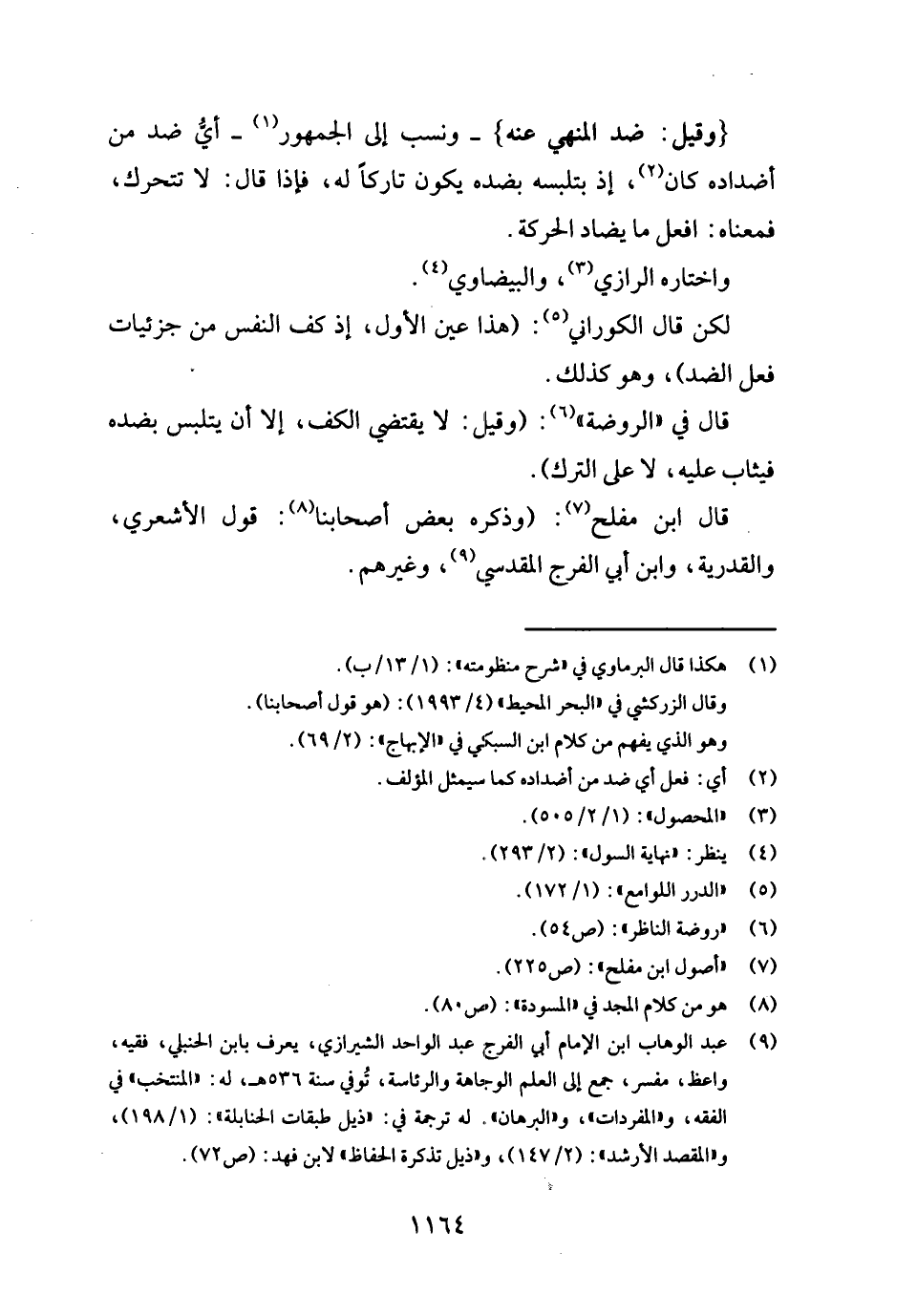 لَكِن قَالَ الكوراني: (هَذَا عين الأول، إِذْ كف النَّفس من جزئيات فعل الضِّدّ) ، وَهُوَ كَذَلِك.