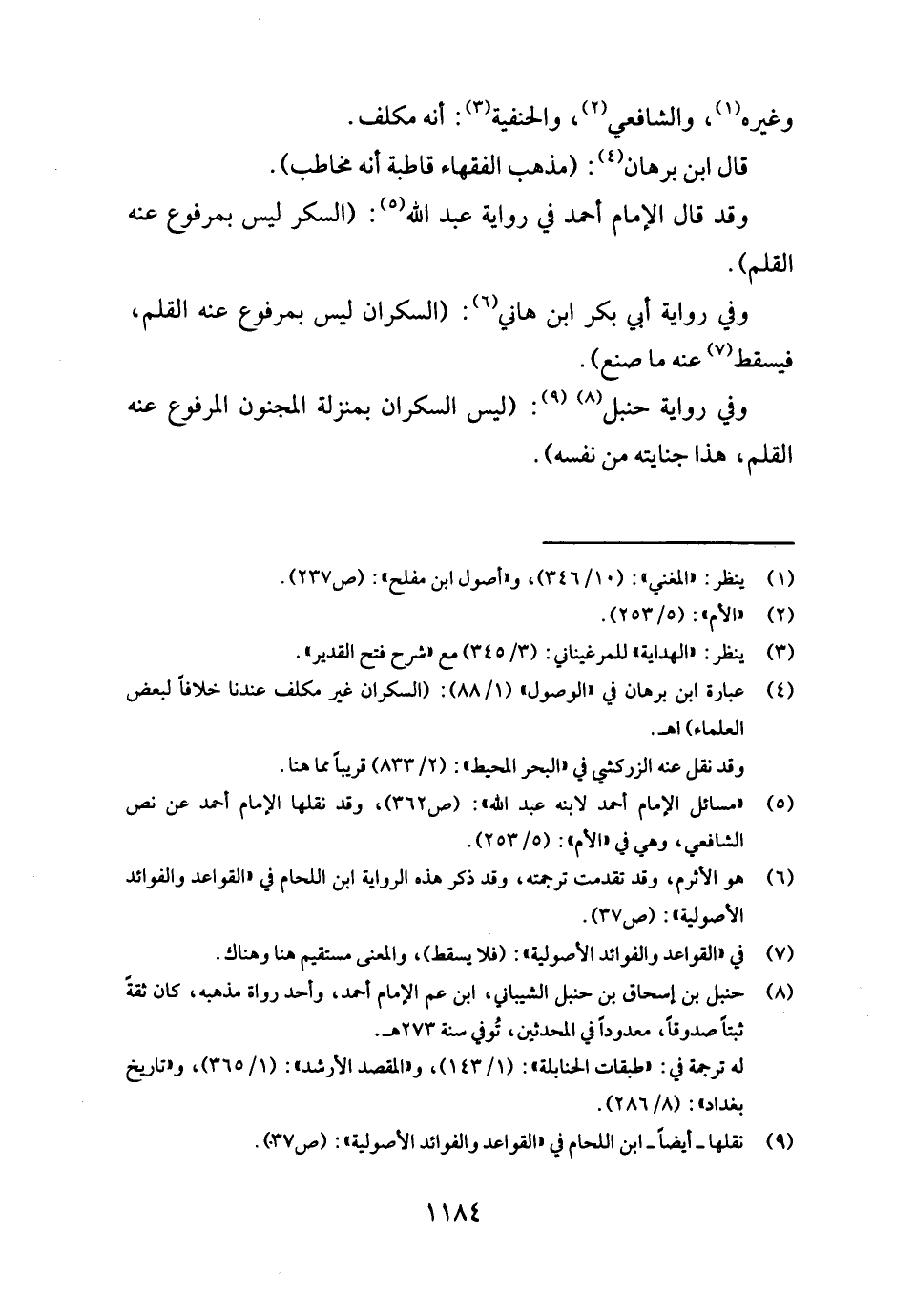 وَقد قَالَ الإِمَام أَحْمد فِي رِوَايَة عبد الله: (السكر لَيْسَ بمرفوع عَنهُ الْقَلَم) .
