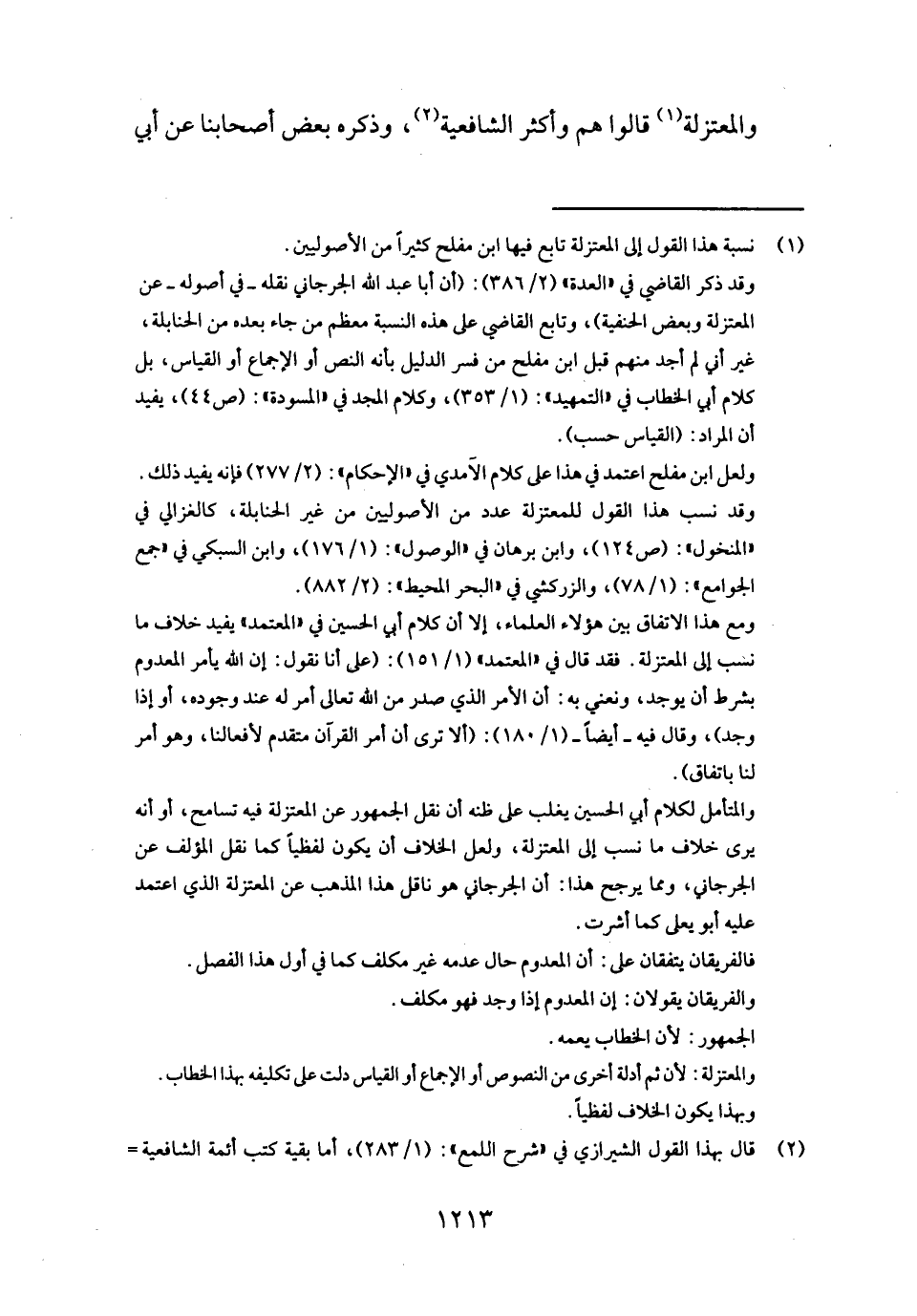 والمعتزلة قَالُوا هم وَأكْثر الشَّافِعِيَّة، وَذكره بعض أَصْحَابنَا عَن أبي