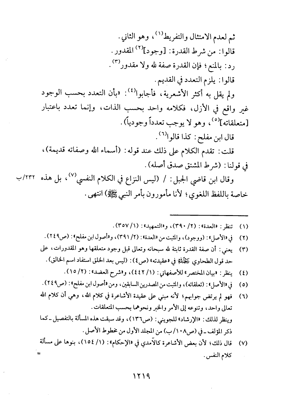 وَلم يقل بِهِ أَكثر الأشعرية، فَأَجَابُوا: " بِأَن التَّعَدُّد بِحَسب الْوُجُود غير وَاقع فِي الْأَزَل، فَكَلَامه وَاحِد بِحَسب الذَّات، وَإِنَّمَا تعدد بِاعْتِبَار [متعلقاته] ، وَهُوَ لَا يُوجب تعددا وجوديا) .