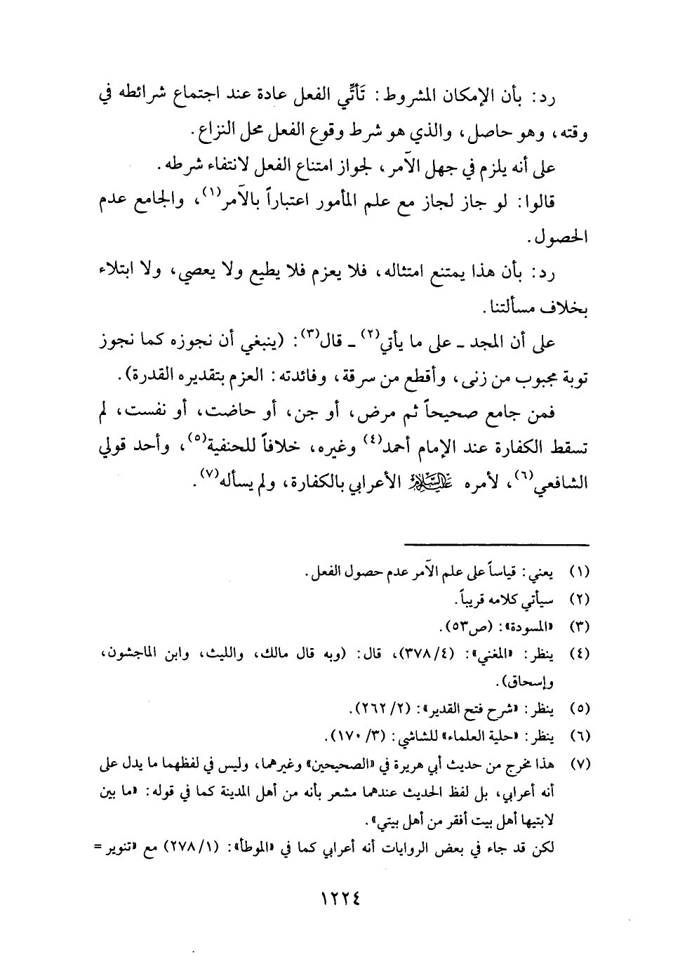 رد: بِأَن الْإِمْكَان الْمَشْرُوط: تَأتي الْفِعْل عَادَة عِنْد اجْتِمَاع شَرَائِطه فِي وقته، وَهُوَ حَاصِل، وَالَّذِي هُوَ شَرط وُقُوع الْفِعْل مَحل النزاع.