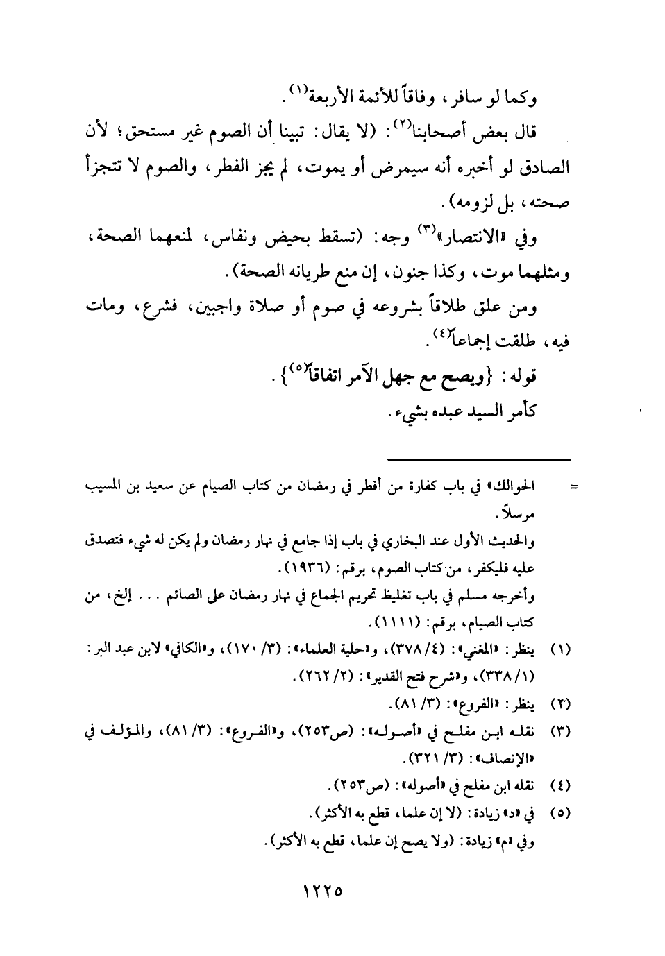 قَالَ بعض أَصْحَابنَا: (لَا يُقَال ٥: تَبينا أَن الصَّوْم غير مُسْتَحقّ؛ لِأَن الصَّادِق لَو أخبرهُ أَنه سيمرض أَو يَمُوت، لم يجز الْفطر، وَالصَّوْم لَا تتجزأ صِحَّته، بل لُزُومه) .