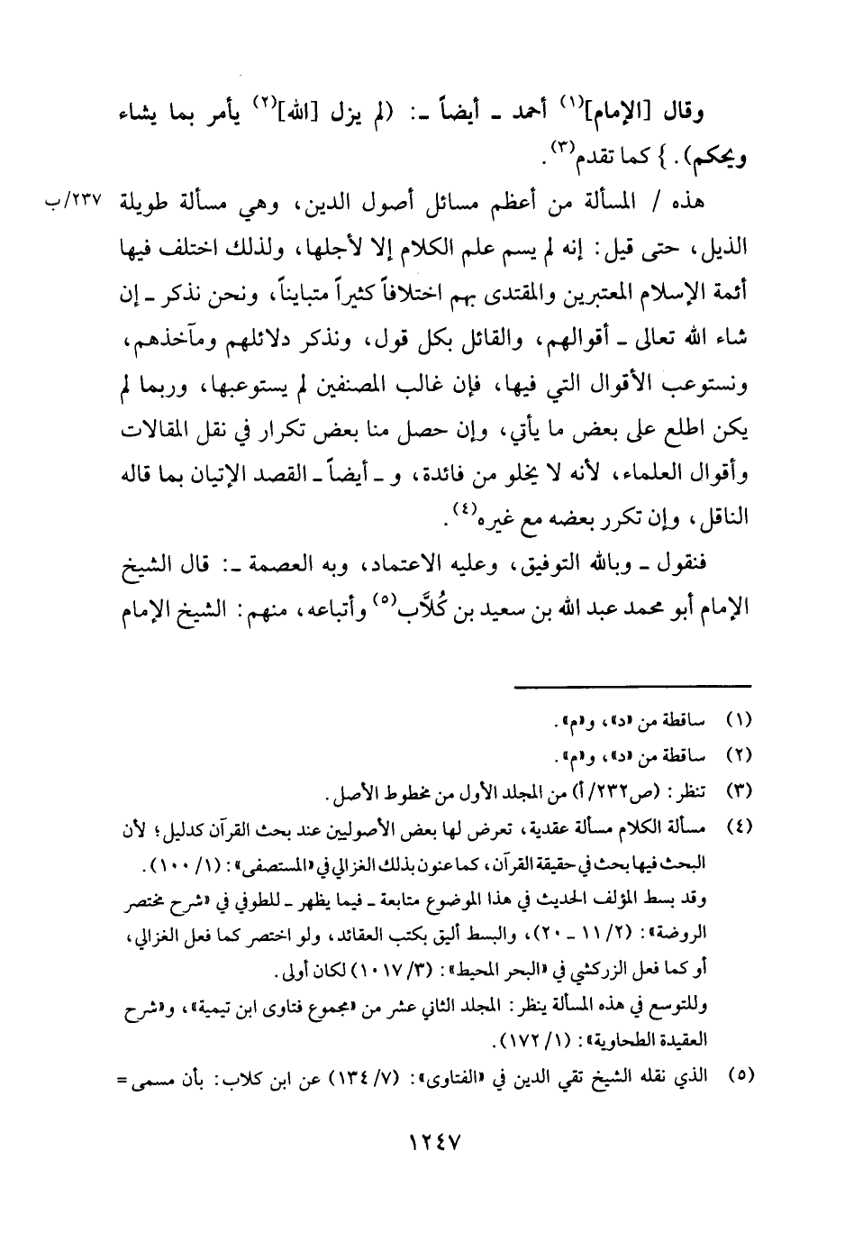 فَنَقُول - وَبِاللَّهِ التَّوْفِيق، وَعَلِيهِ الِاعْتِمَاد، وَبِه الْعِصْمَة -: قَالَ الشَّيْخ الإِمَام أَبُو مُحَمَّد عبد الله بن سعيد بن كلاب وَأَتْبَاعه، مِنْهُم: الشَّيْخ الإِمَام