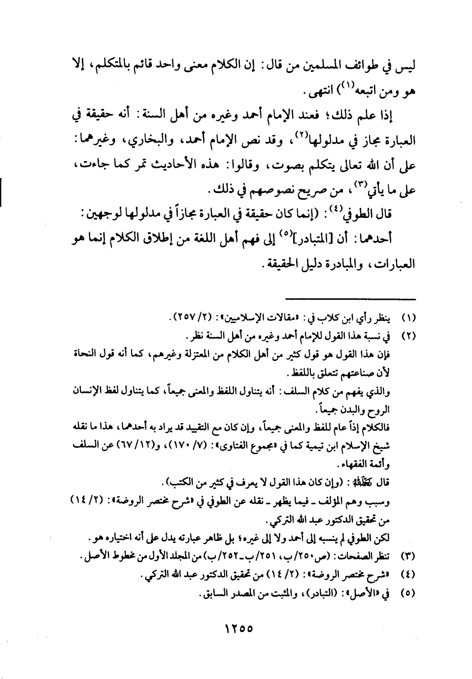 إِذا علم ذَلِك؛ فَعِنْدَ الإِمَام أَحْمد وَغَيره من أهل السّنة: أَن حَقِيقَة فِي الْعبارَة مجَاز فِي مدلولها، وَقد نَص الإِمَام أَحْمد، وَالْبُخَارِيّ، وَغَيرهمَا: على أَن الله تَعَالَى يتَكَلَّم بِصَوْت، وَقَالُوا: هَذِه الْأَحَادِيث تمر كَمَا جَاءَت، على مَا يَأْتِي، من صَرِيح نصوصهم فِي ذَلِك.