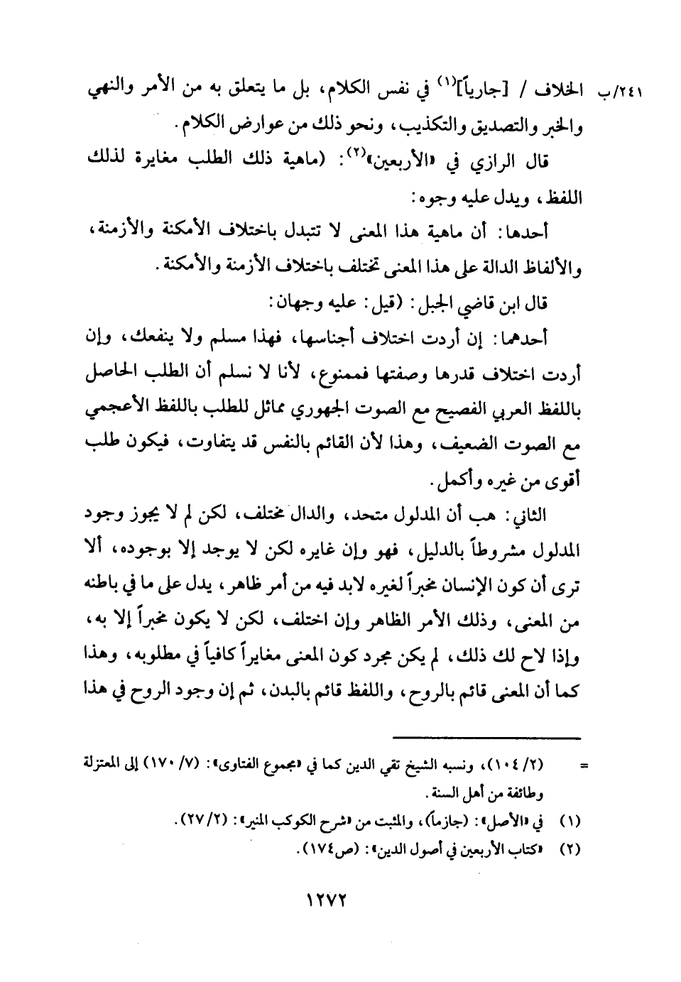 قَالَ الرَّازِيّ فِي " الْأَرْبَعين ": (مَاهِيَّة ذَلِك الطّلب مُغَايرَة لذَلِك اللَّفْظ، وَيدل عَلَيْهِ وُجُوه:
