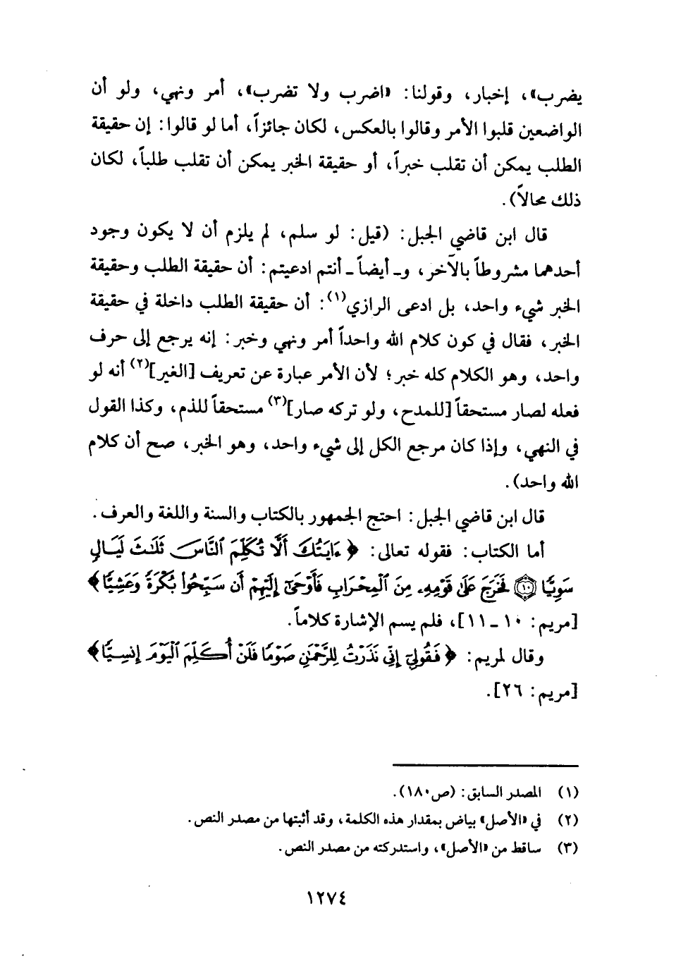أما الْكتاب: فَقَوله تَعَالَى: {آيتك أَلا تكلم النَّاس ثَلَاث لَيَال سويا (١٠) فَخرج على قومه من الْمِحْرَاب فَأوحى إِلَيْهِم أَن سبحوا بكرَة وعشيا} [مَرْيَم: ١٠ - ١١] ، فَلم يسم الْإِشَارَة كلَاما.