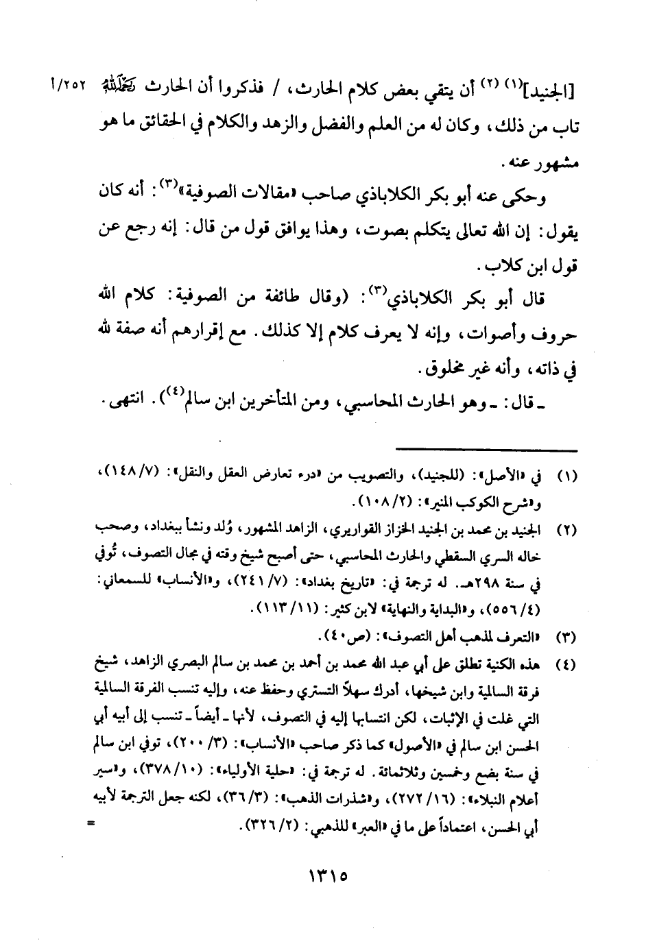 - قَالَ: - وَهُوَ الْحَارِث المحاسبي، وَمن الْمُتَأَخِّرين ابْن سَالم) . انْتهى.