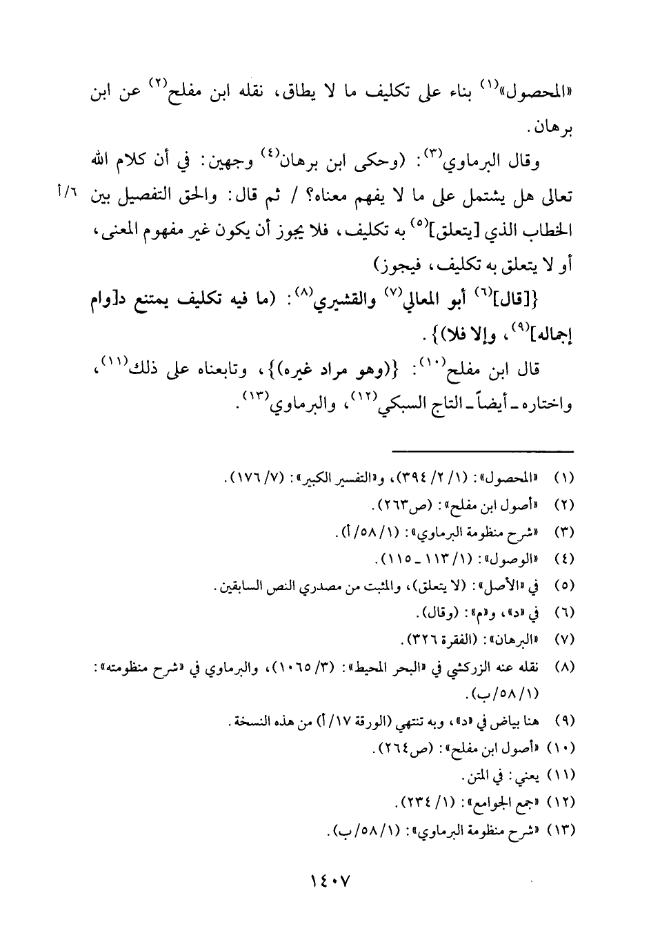 " الْمَحْصُول " بِنَاء على تَكْلِيف مَا لَا يُطَاق، نَقله ابْن مُفْلِح عَن ابْن برهَان.