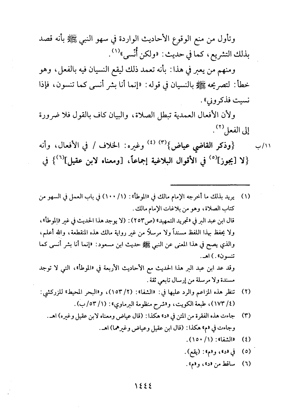 وَتَأَول من منع الْوُقُوع الْأَحَادِيث الْوَارِدَة فِي سَهْو النَّبِي - صَلَّى اللَّهُ عَلَيْهِ وَسَلَّم َ - بِأَنَّهُ قصد بذلك التشريع، كَمَا فِي حَدِيث: " وَلَكِن أُنسى ".