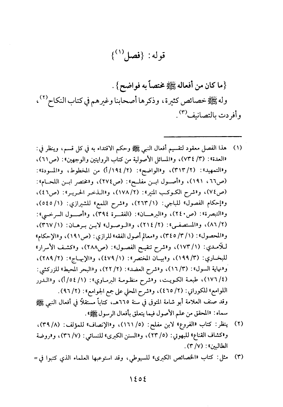 {مَا كَانَ من أَفعاله - صَلَّى اللَّهُ عَلَيْهِ وَسَلَّم َ - مُخْتَصًّا بِهِ فَوَاضِح} .