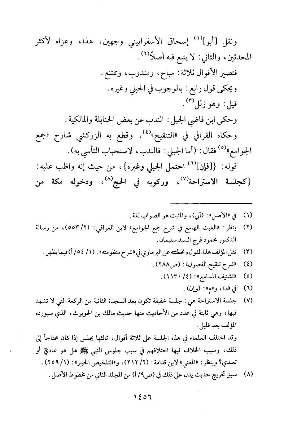 وَحَكَاهُ الْقَرَافِيّ فِي " التَّنْقِيح "، وَقطع بِهِ الزَّرْكَشِيّ شَارِح " جمع الْجَوَامِع " فَقَالَ: (أما الْجبلي: فالندب، لاستحباب التأسي بِهِ) .
