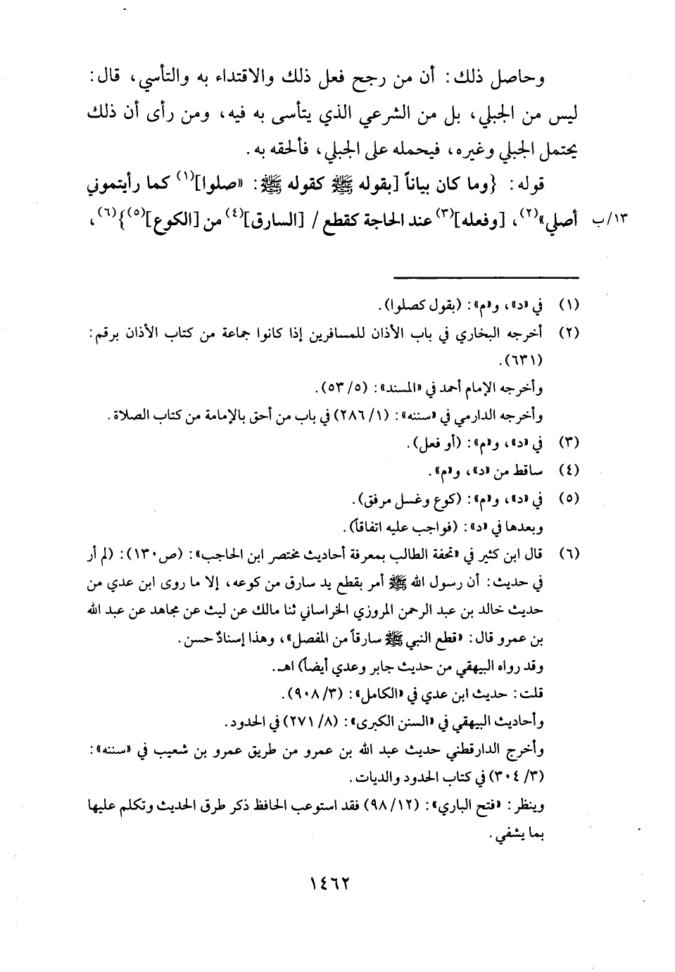 قَوْله: {وَمَا كَانَ بَيَانا [بقوله - صَلَّى اللَّهُ عَلَيْهِ وَسَلَّم َ - كَقَوْلِه - صَلَّى اللَّهُ عَلَيْهِ وَسَلَّم َ -: " صلوا] كَمَا رَأَيْتُمُونِي أُصَلِّي "، [وَفعله] عِنْد الْحَاجة كَقطع [السَّارِق] من [الْكُوع] } ،