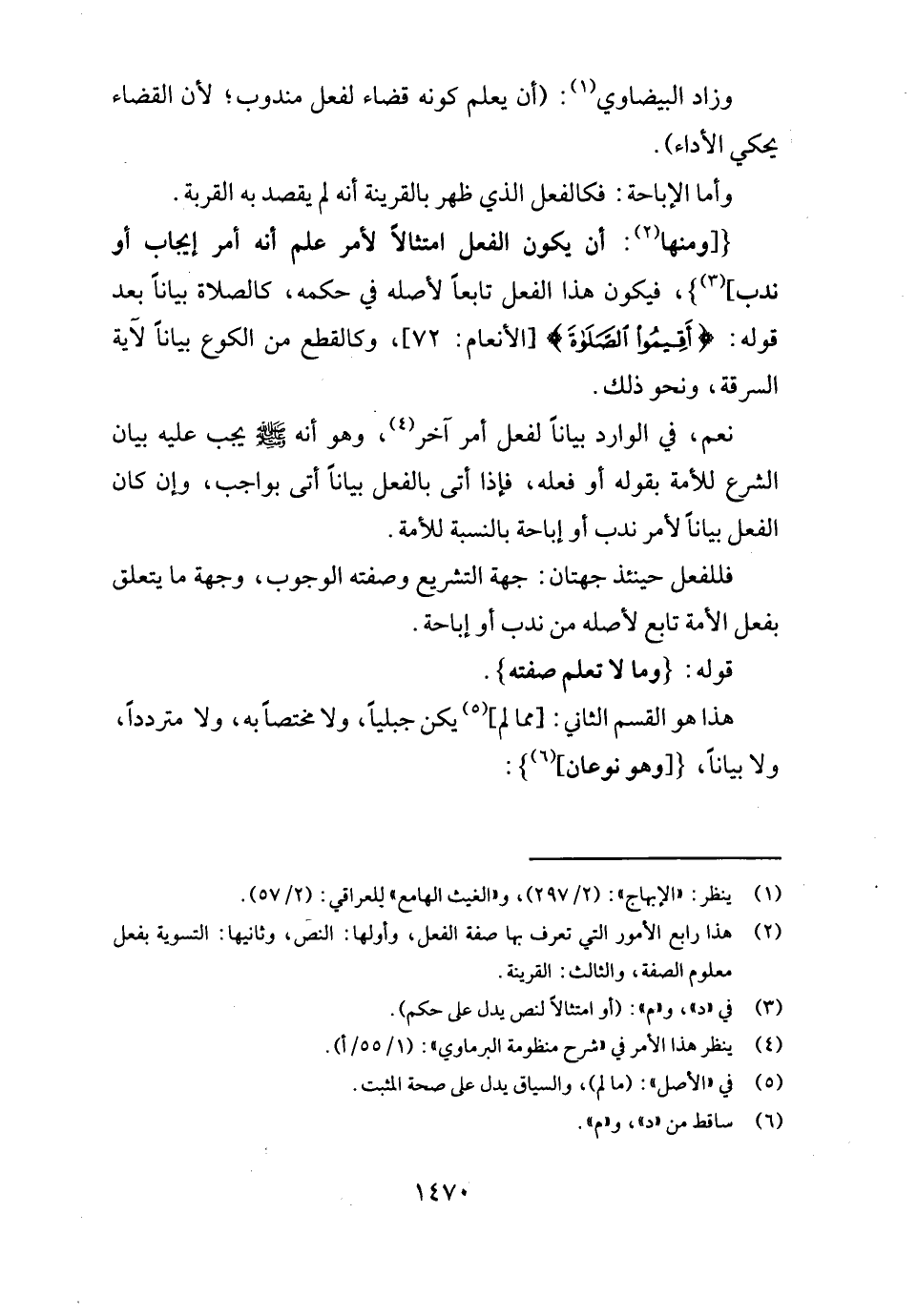 نعم، فِي الْوَارِد بَيَانا لفعل أَمر آخر، وَهُوَ أَنه - صَلَّى اللَّهُ عَلَيْهِ وَسَلَّم َ - يجب عَلَيْهِ بَيَان الشَّرْع للْأمة بقوله أَو فعله، فَإِذا أَتَى بِالْفِعْلِ بَيَانا أَتَى بِوَاجِب، وَإِن كَانَ الْفِعْل بَيَانا لأمر ندب أَو إِبَاحَة بِالنِّسْبَةِ للْأمة.