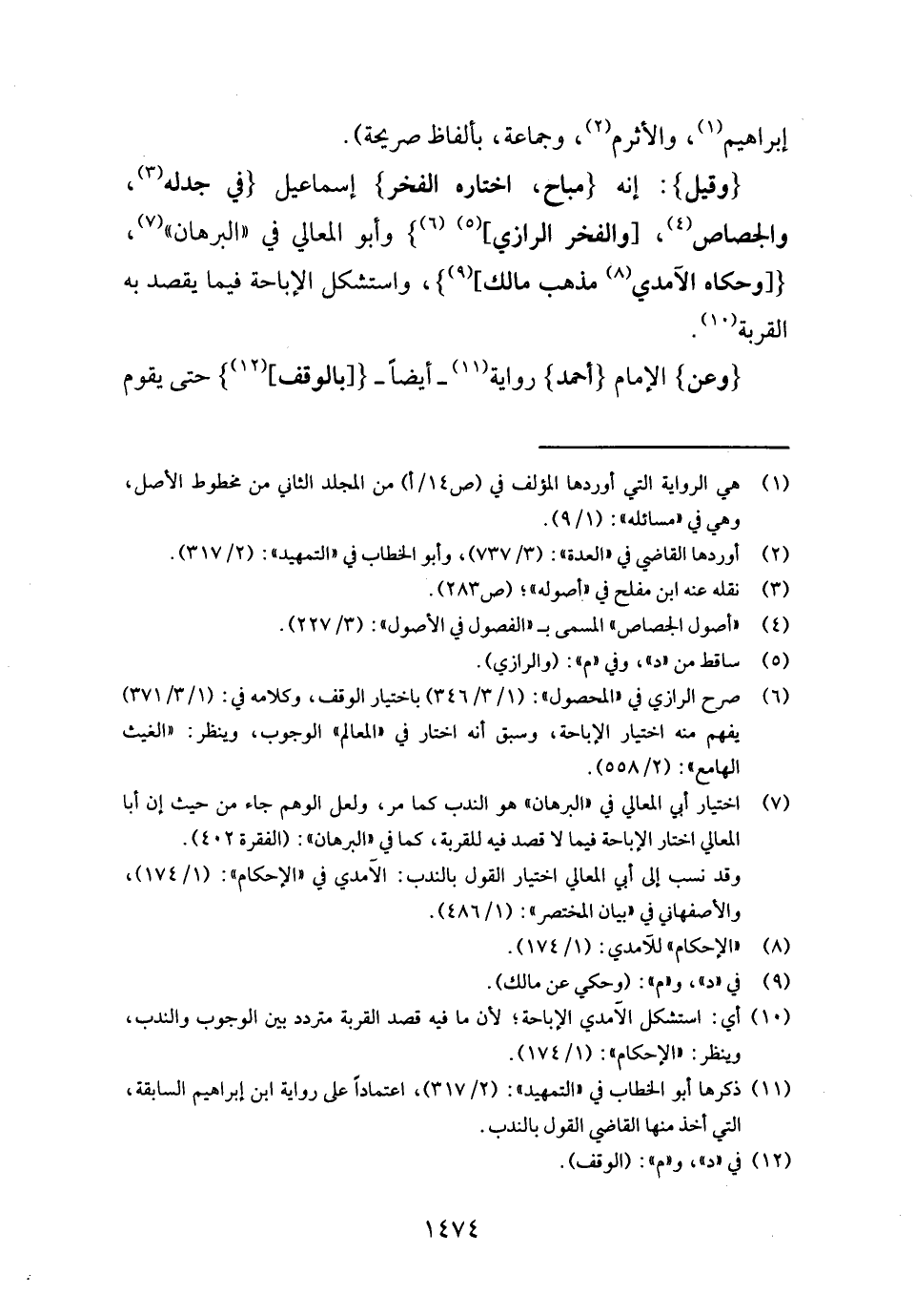 {وَعَن} الإِمَام {أَحْمد} رِوَايَة - أَيْضا - { [بِالْوَقْفِ] } حَتَّى يقوم