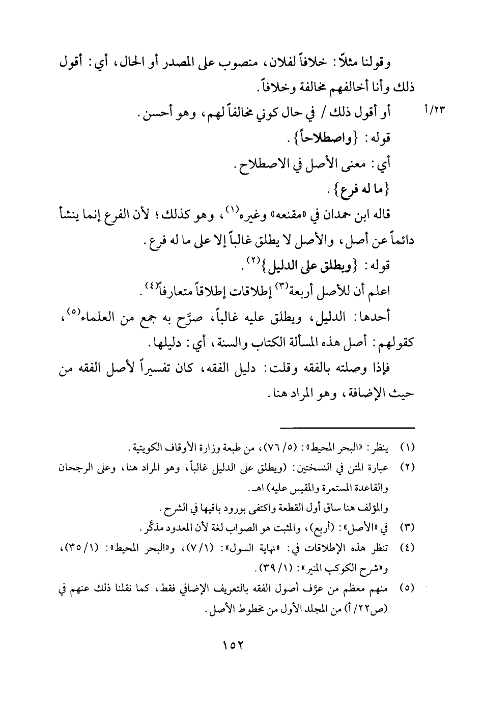 اعْلَم أَن للْأَصْل أَرْبَعَة إطلاقات إطلاقاً متعارفاً.