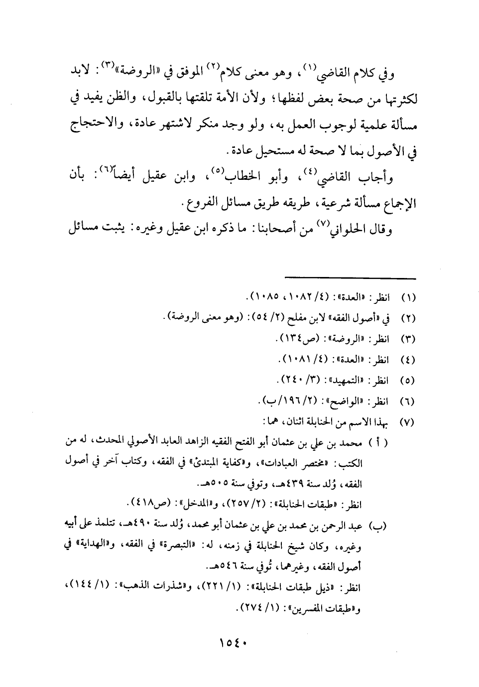 وَقَالَ الْحلْوانِي من أَصْحَابنَا: مَا ذكره ابْن عقيل وَغَيره: يثبت مسَائِل