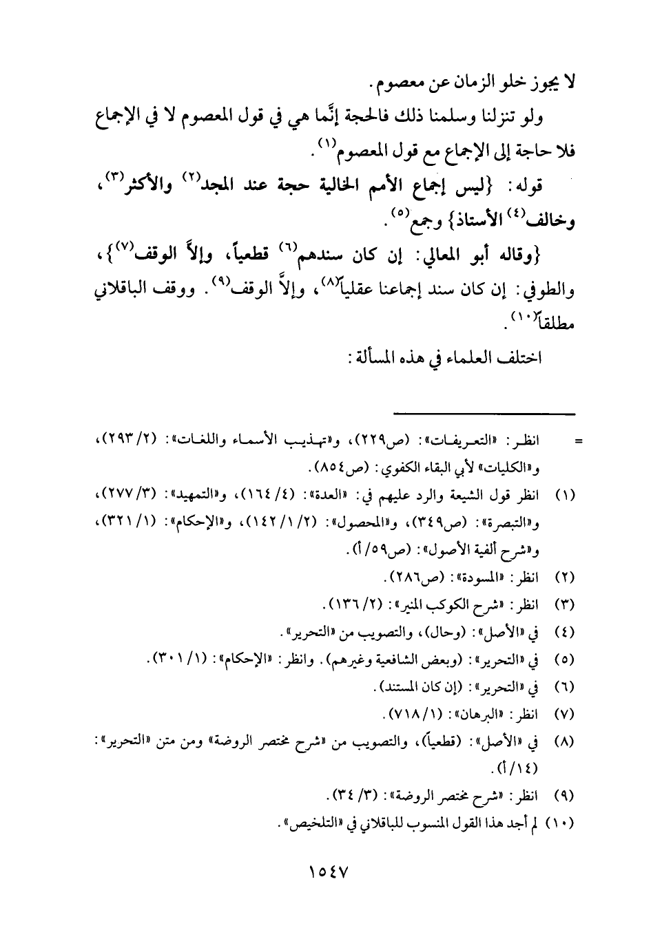 وَلَو تنزلنا وَسلمنَا ذَلِك فالحجة إِنَّمَا هِيَ فِي قَول الْمَعْصُوم لَا فِي الْإِجْمَاع فَلَا حَاجَة إِلَى الْإِجْمَاع مَعَ قَول الْمَعْصُوم.