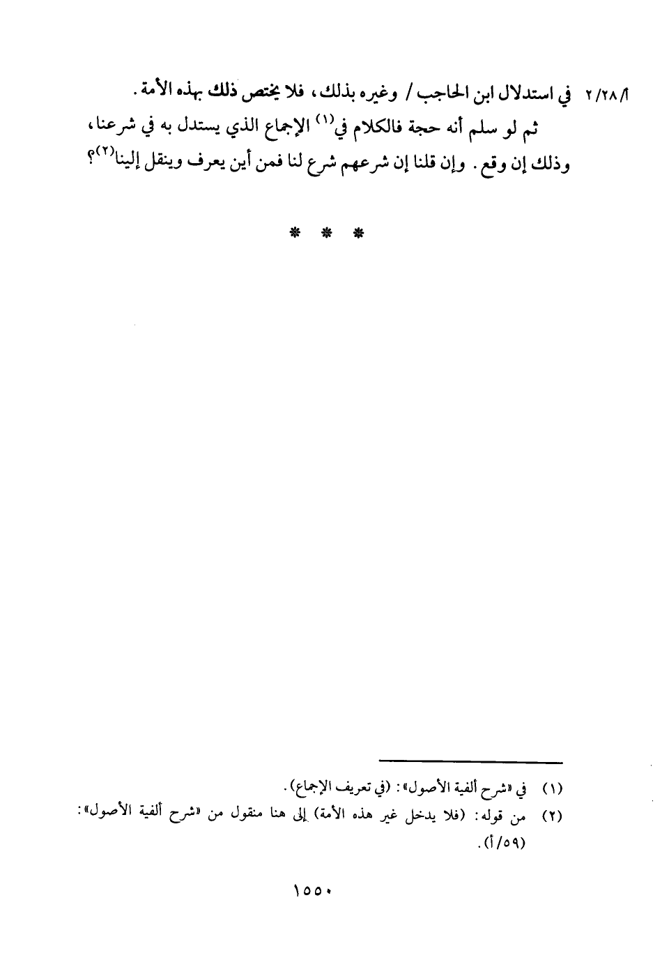 فِي اسْتِدْلَال ابْن الْحَاجِب وَغَيره بذلك، فَلَا يخْتَص ذَلِك بِهَذِهِ الْأمة.