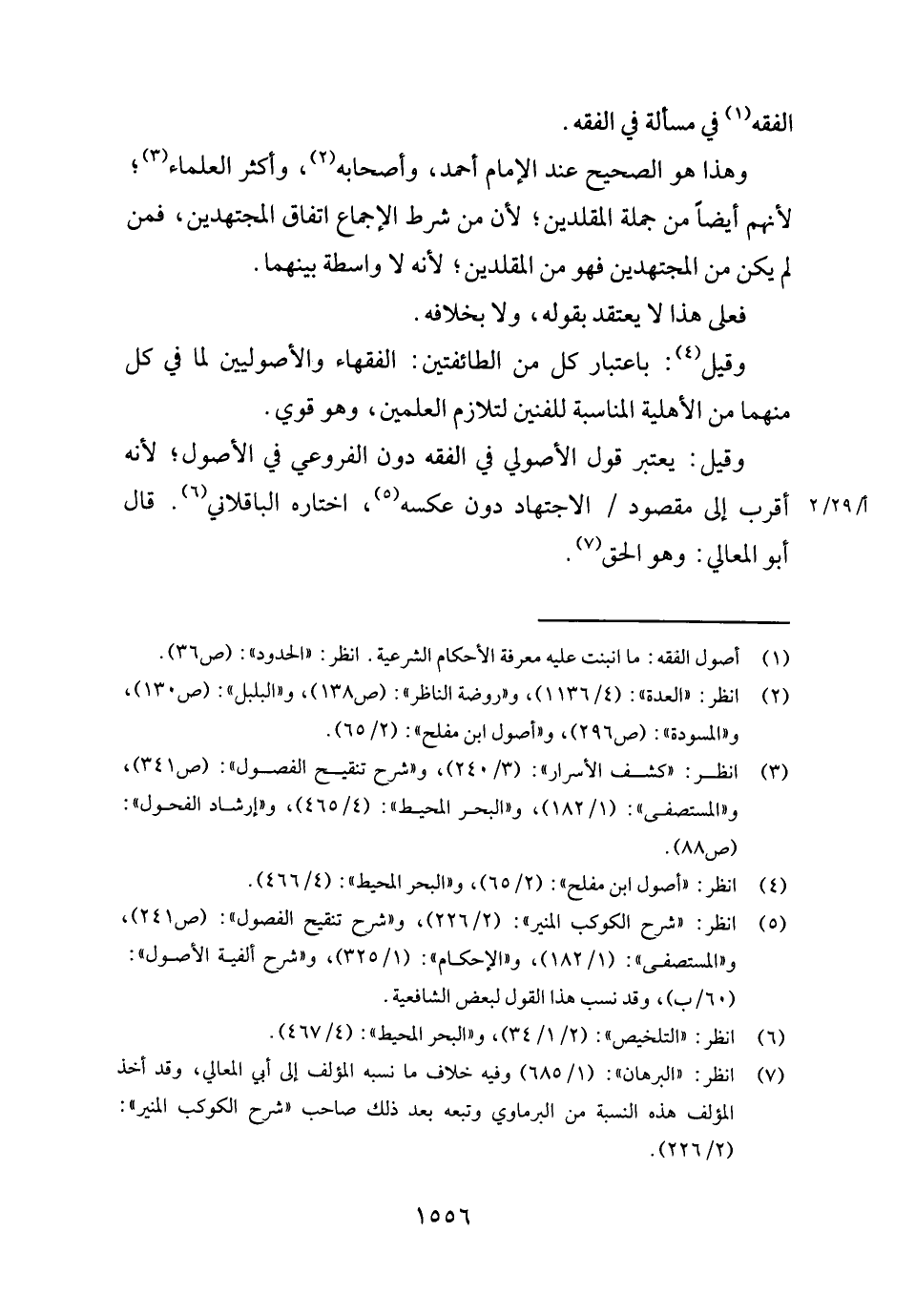 وَقيل: بِاعْتِبَار كل من الطَّائِفَتَيْنِ: الْفُقَهَاء والأصوليين لما فِي كل مِنْهُمَا من الْأَهْلِيَّة الْمُنَاسبَة للفنين لتلازم العلمين، وَهُوَ قوي.