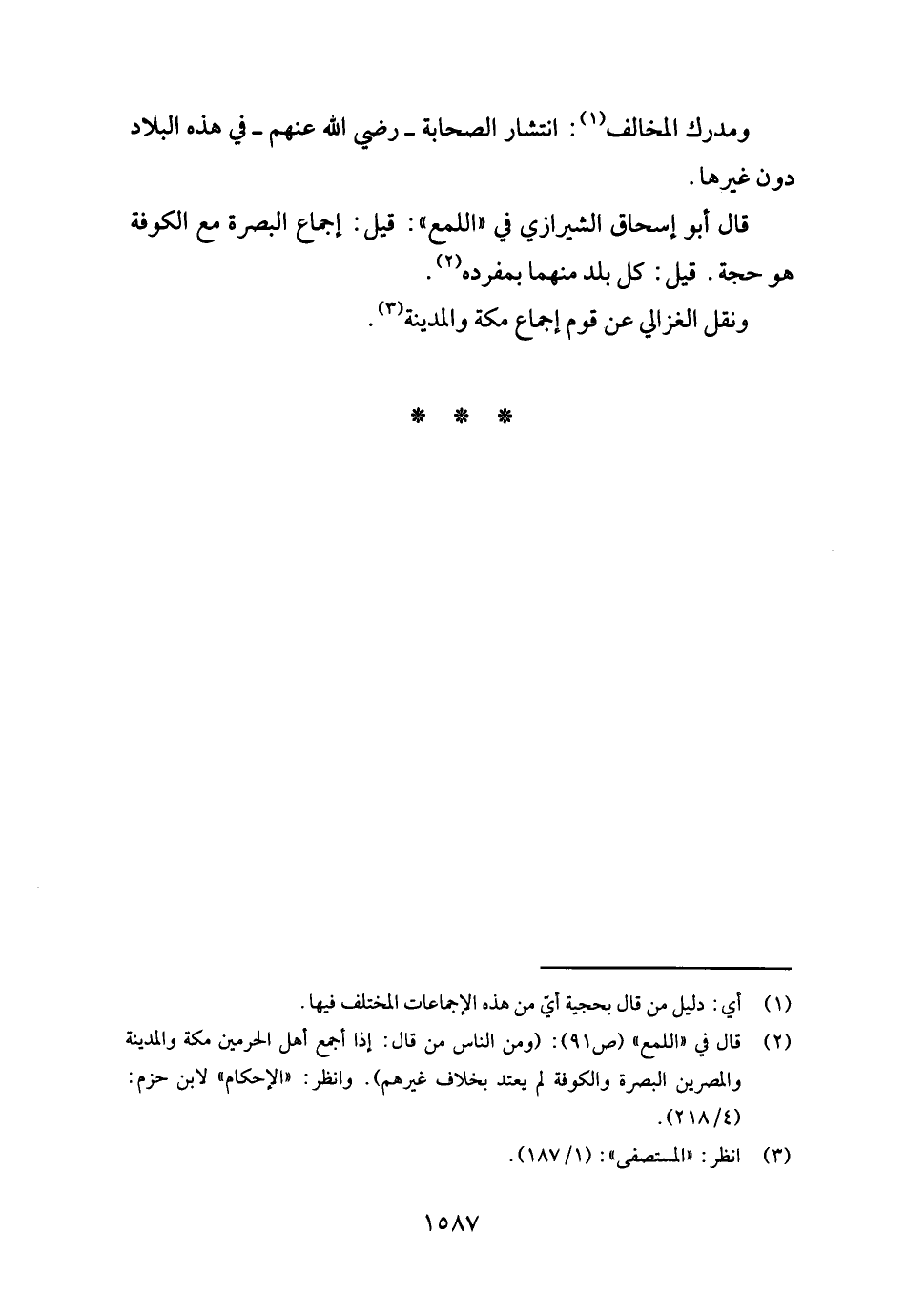 قَالَ أَبُو إِسْحَاق الشِّيرَازِيّ فِي " اللمع ": قيل: إِجْمَاع الْبَصْرَة مَعَ الْكُوفَة هُوَ حجَّة. قيل: كل بلد مِنْهُمَا بمفرده.
