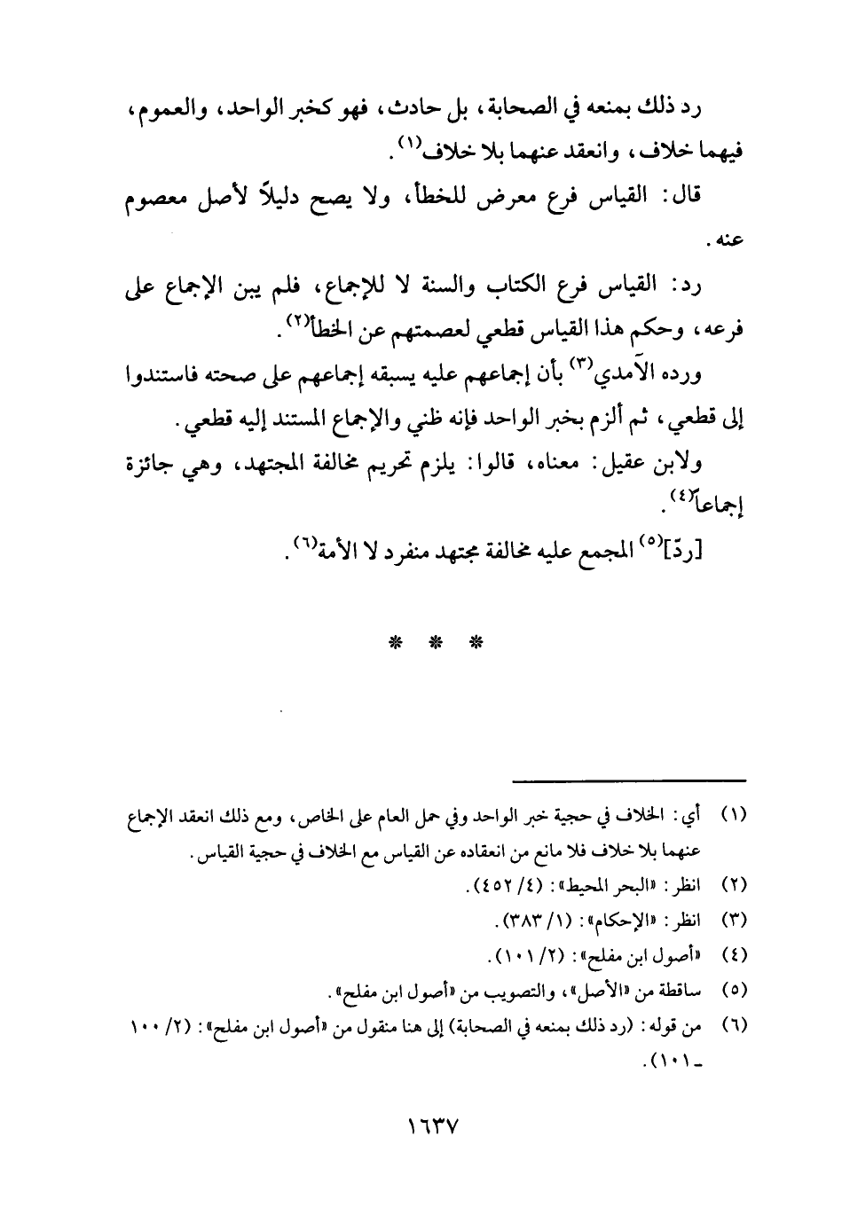 رد: الْقيَاس فرع الْكتاب وَالسّنة لَا للْإِجْمَاع، فَلم يبن الْإِجْمَاع على فَرعه، وَحكم هَذَا الْقيَاس قَطْعِيّ لعصمتهم عَن الْخَطَأ.