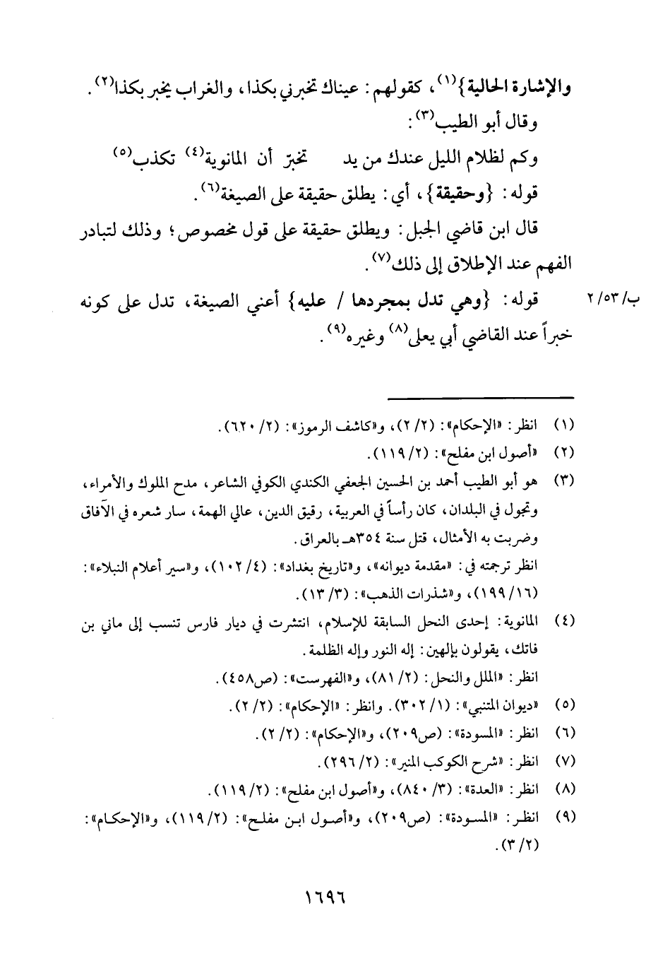 وَالْإِشَارَة الحالية} ، كَقَوْلِهِم: عَيْنَاك تُخبرنِي بِكَذَا، والغراب يخبر بِكَذَا.