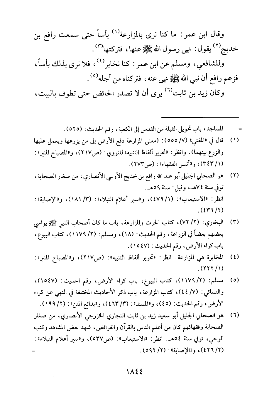 وَللشَّافِعِيّ، وَمُسلم عَن ابْن عمر: كُنَّا نخابر، فَلَا نرى بذلك بَأْسا، فَزعم رَافع أَن نَبِي الله - صَلَّى اللَّهُ عَلَيْهِ وَسَلَّم َ - نهى عَنهُ، فتركناه من أَجله.
