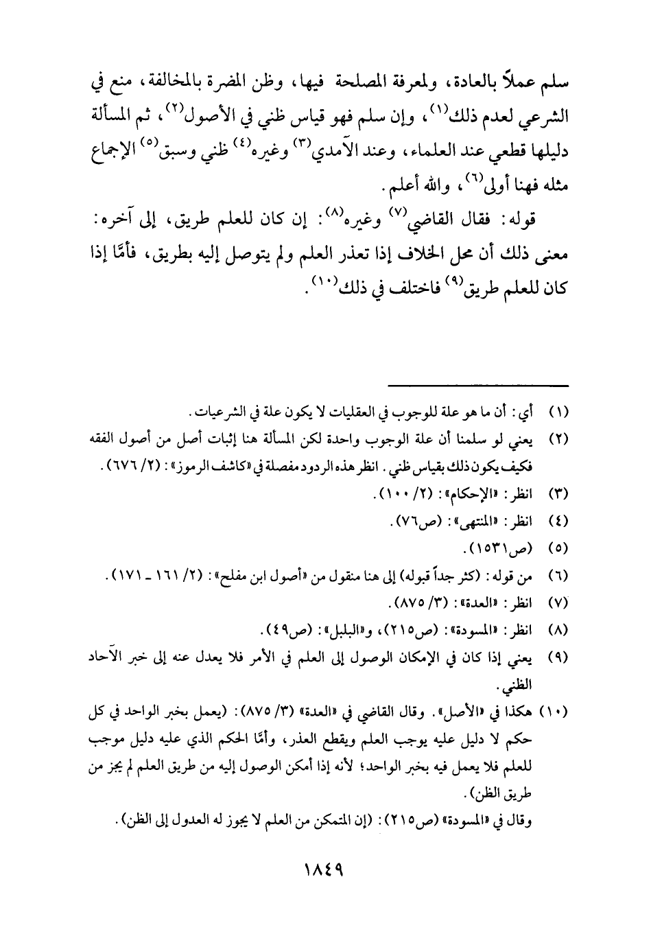 قَوْله: فَقَالَ القَاضِي وَغَيره: إِن كَانَ للْعلم طَرِيق، إِلَى آخِره: معنى ذَلِك أَن مَحل الْخلاف إِذا تعذر الْعلم وَلم يتَوَصَّل إِلَيْهِ بطرِيق، فَأَما إِذا كَانَ للْعلم طَرِيق فَاخْتلف فِي ذَلِك.