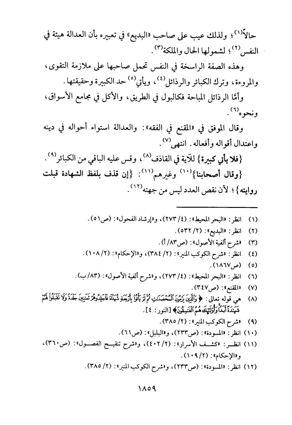 وَقَالَ الْمُوفق فِي " الْمقنع فِي الْفِقْه ": وَالْعَدَالَة اسْتِوَاء أَحْوَاله فِي دينه واعتدال أَقْوَاله وأفعاله. انْتهى.