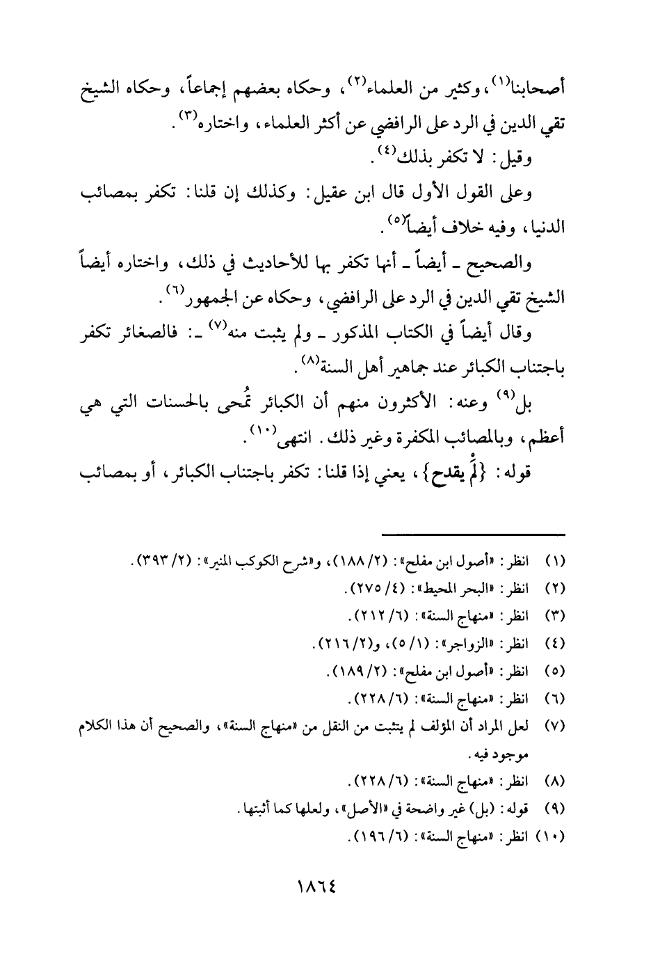 أَصْحَابنَا، وَكثير من الْعلمَاء، وَحَكَاهُ بَعضهم إِجْمَاعًا، وَحَكَاهُ الشَّيْخ تَقِيّ الدّين فِي الرَّد على الرافضي عَن أَكثر الْعلمَاء، وَاخْتَارَهُ.