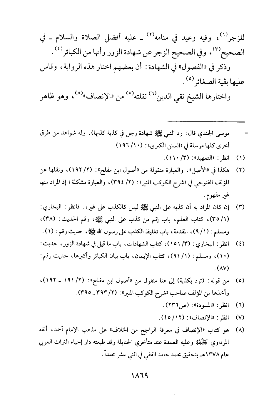 للزجر، وَفِيه وَعِيد فِي مَنَامه - عَلَيْهِ أفضل الصَّلَاة وَالسَّلَام - فِي الصَّحِيح، وَفِي الصَّحِيح الزّجر عَن شَهَادَة الزُّور وَأَنَّهَا من الْكَبَائِر.