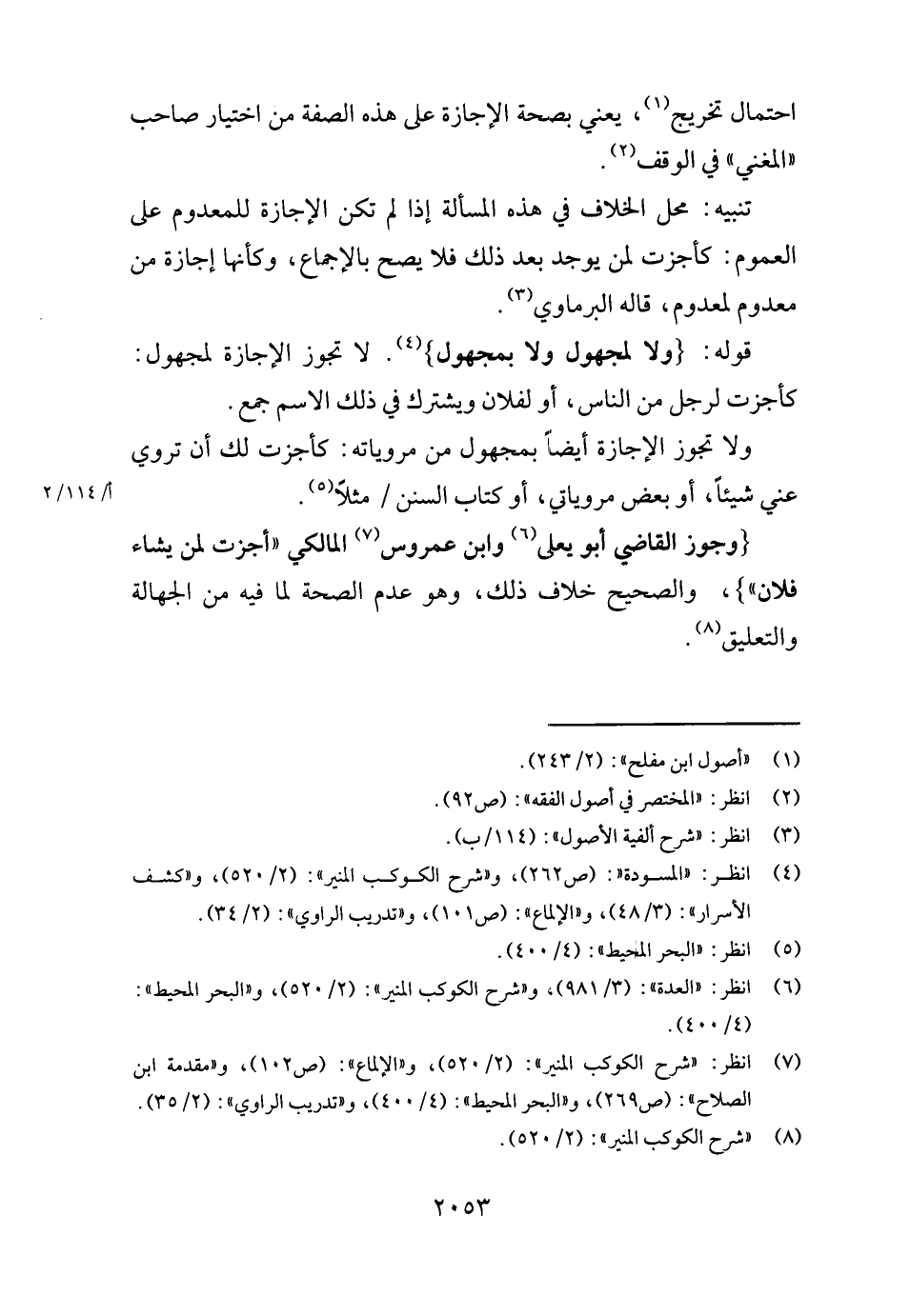قَوْله: {وَلَا لمجهول وَلَا بِمَجْهُول} . لَا تجوز الْإِجَازَة لمجهول: كأجزت لرجل من النَّاس، أَو لفُلَان ويشترك فِي ذَلِك الِاسْم جمع.