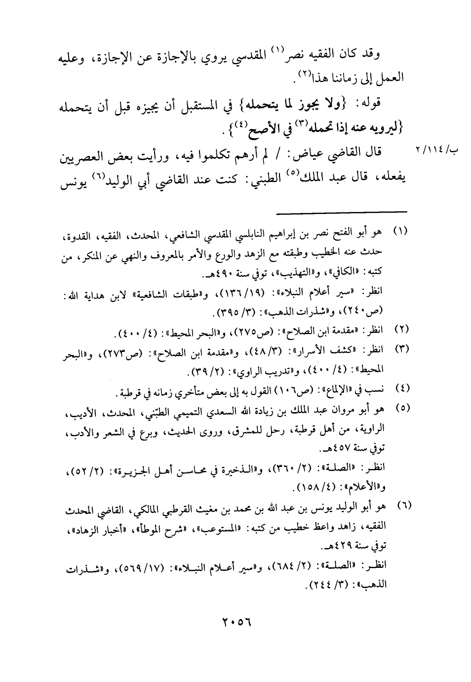 قَالَ القَاضِي عِيَاض: لم أرهم تكلمُوا فِيهِ، وَرَأَيْت بعض العصريين يَفْعَله، قَالَ عبد الْملك الطبني: كنت عِنْد القَاضِي أبي الْوَلِيد يُونُس