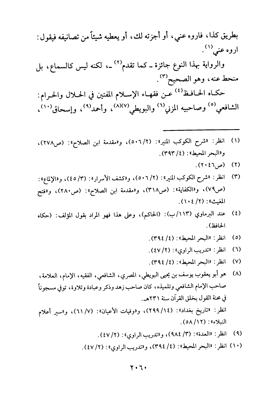 حَكَاهُ الْحَافِظ عَن فُقَهَاء الْإِسْلَام الْمُفْتِينَ فِي الْحَلَال وَالْحرَام: الشَّافِعِي وصاحبيه الْمُزنِيّ والبويطي، وَأحمد، وَإِسْحَاق،