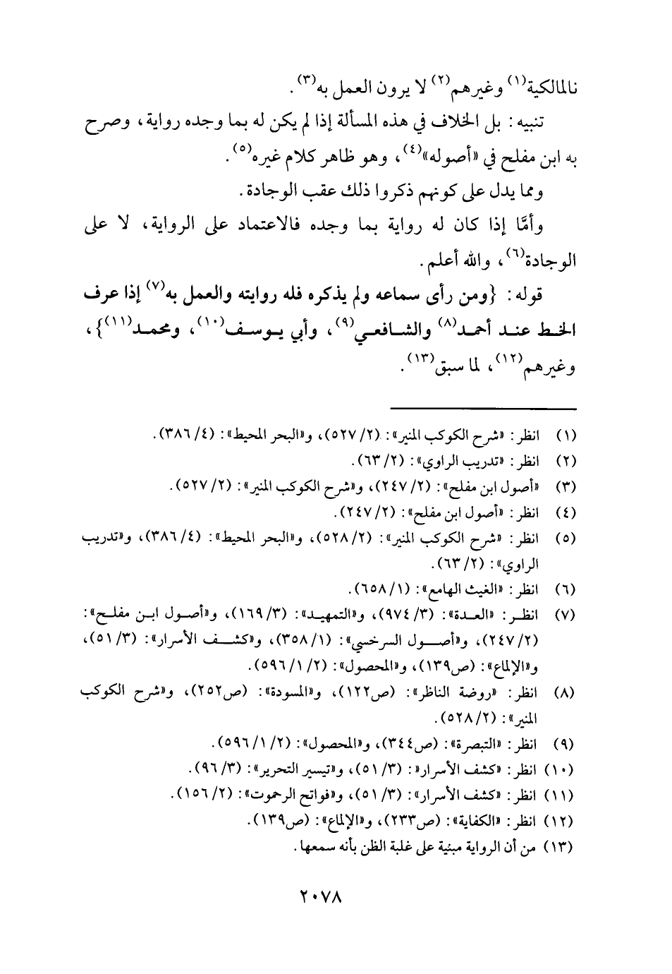 تَنْبِيه: بل الْخلاف فِي هَذِه الْمَسْأَلَة إِذا لم يكن لَهُ بِمَا وجده رِوَايَة، وَصرح بِهِ ابْن مُفْلِح فِي " أُصُوله "، وَهُوَ ظَاهر كَلَام غَيره.